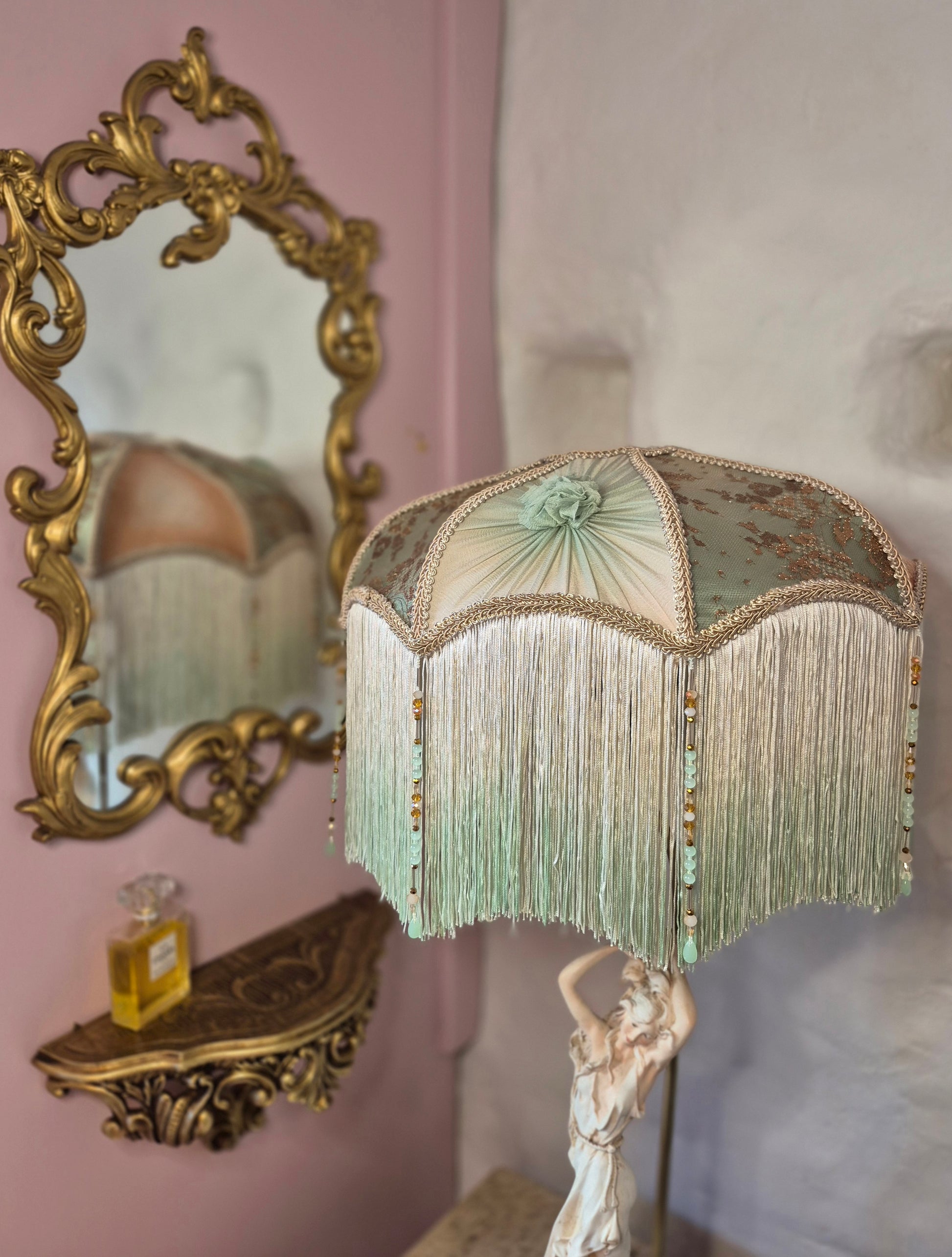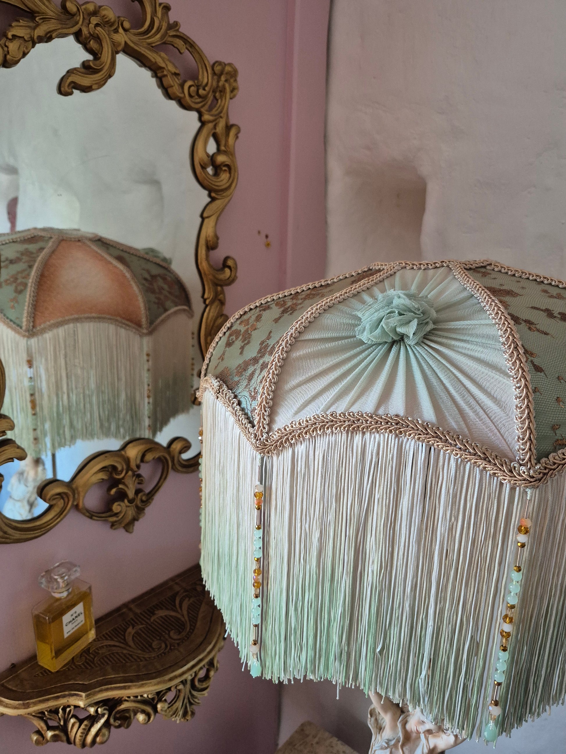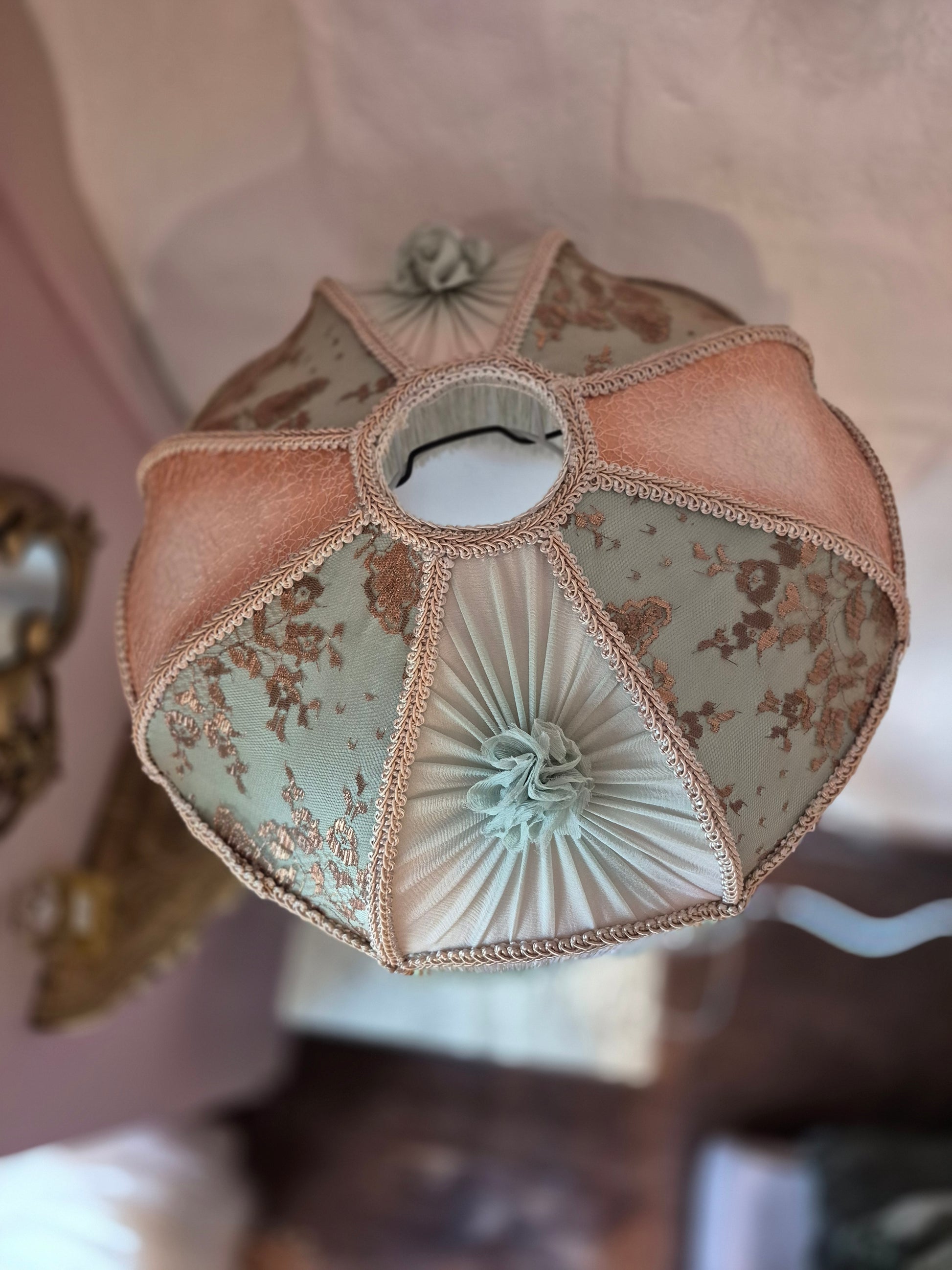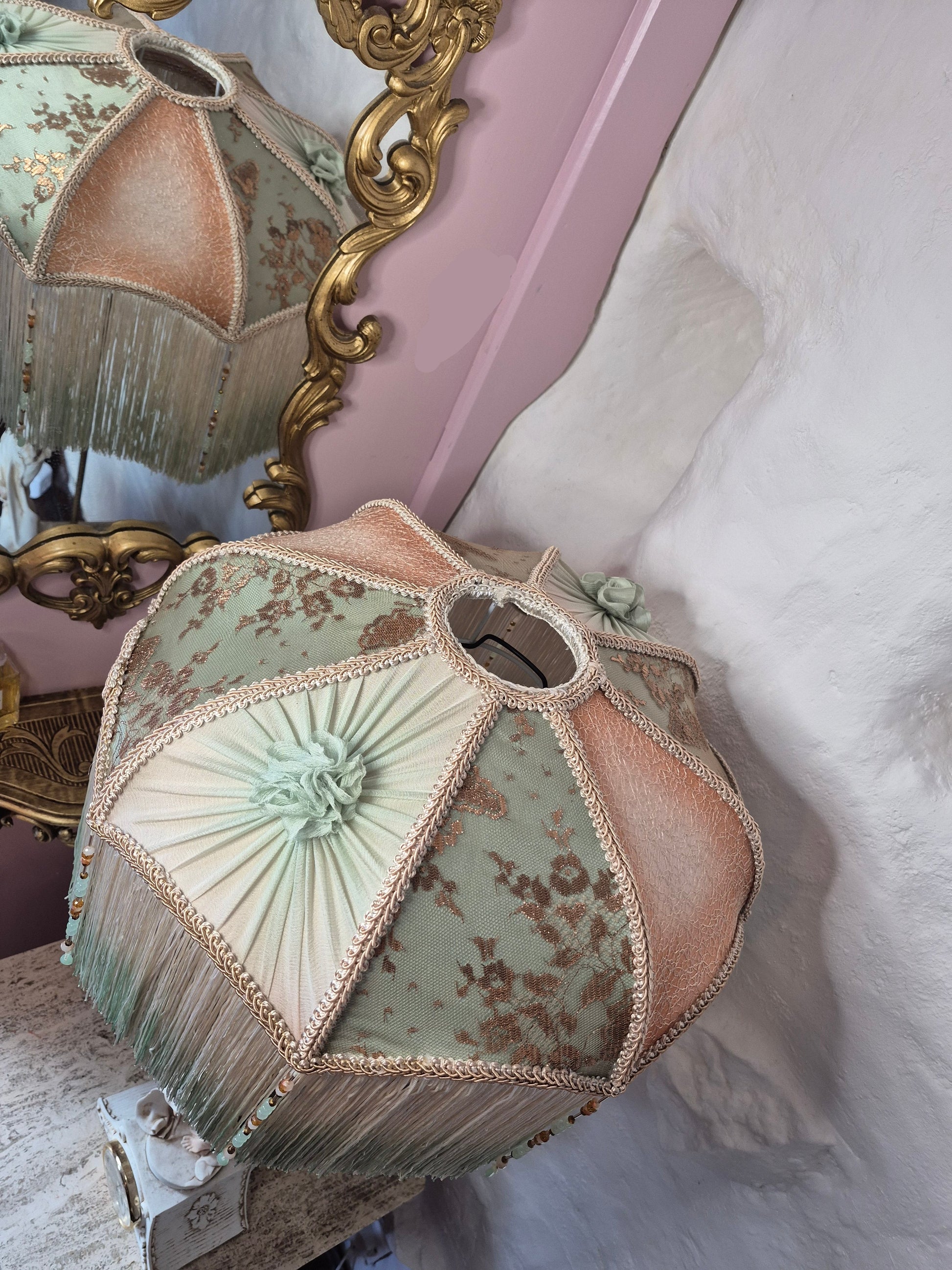 It took me a while to find the exact beads I wanted for this piece but I eventually found the perfect combination of creams and bronzes and jades, and I think they are the perfect jewellery to finish the shade, along with the gold braided trim.