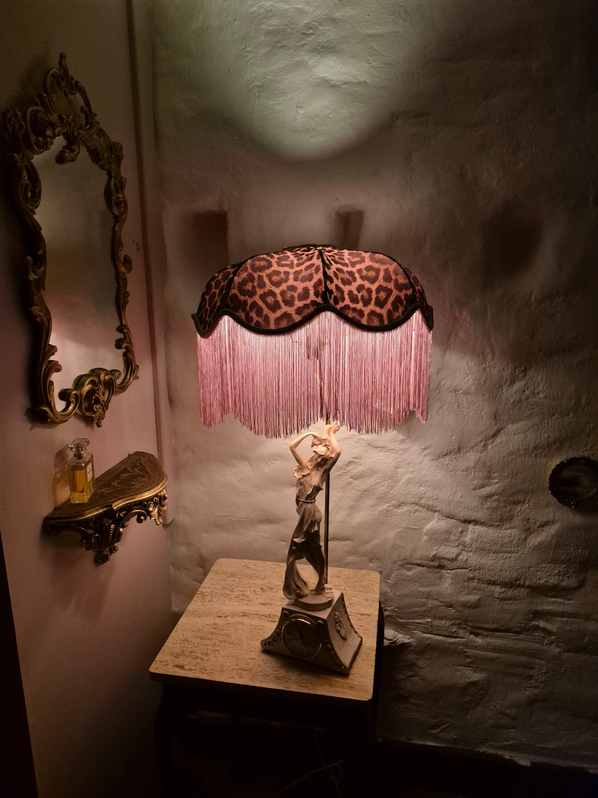 A luxurious leopard, prowling through your room with her Big Cat Energy. This lampshade is made with such a stunning print that goes with everything (remember, leopard print is a neutral!). Lights on or off, she's a joy to look at and such a sultry centrepiece for your room.